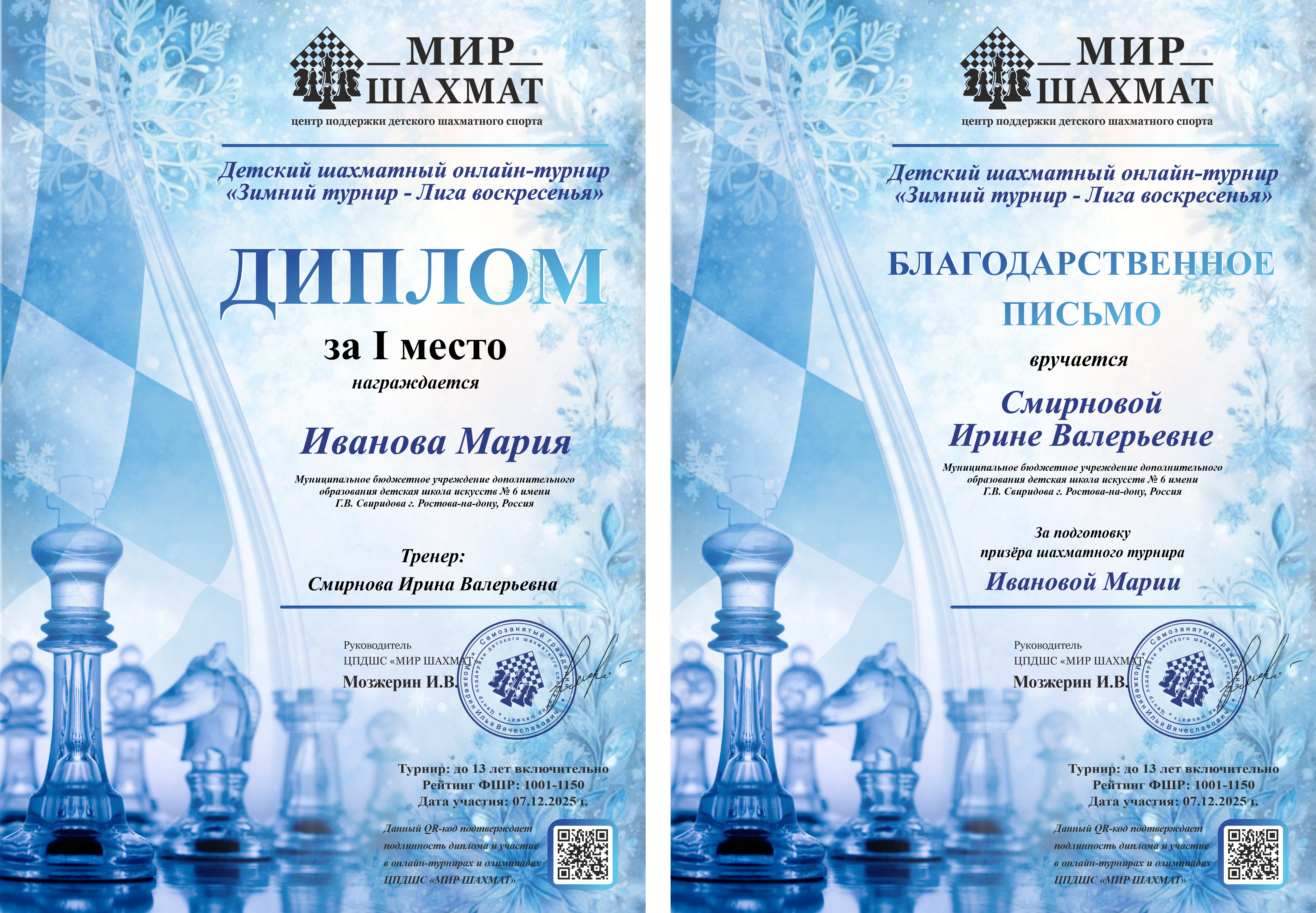 Публикация официальных итогов турниров в разделе "Результаты" и отправка электронных дипломов и благодарственных писем осуществляется в течение пяти суток после проведения соревнования.
