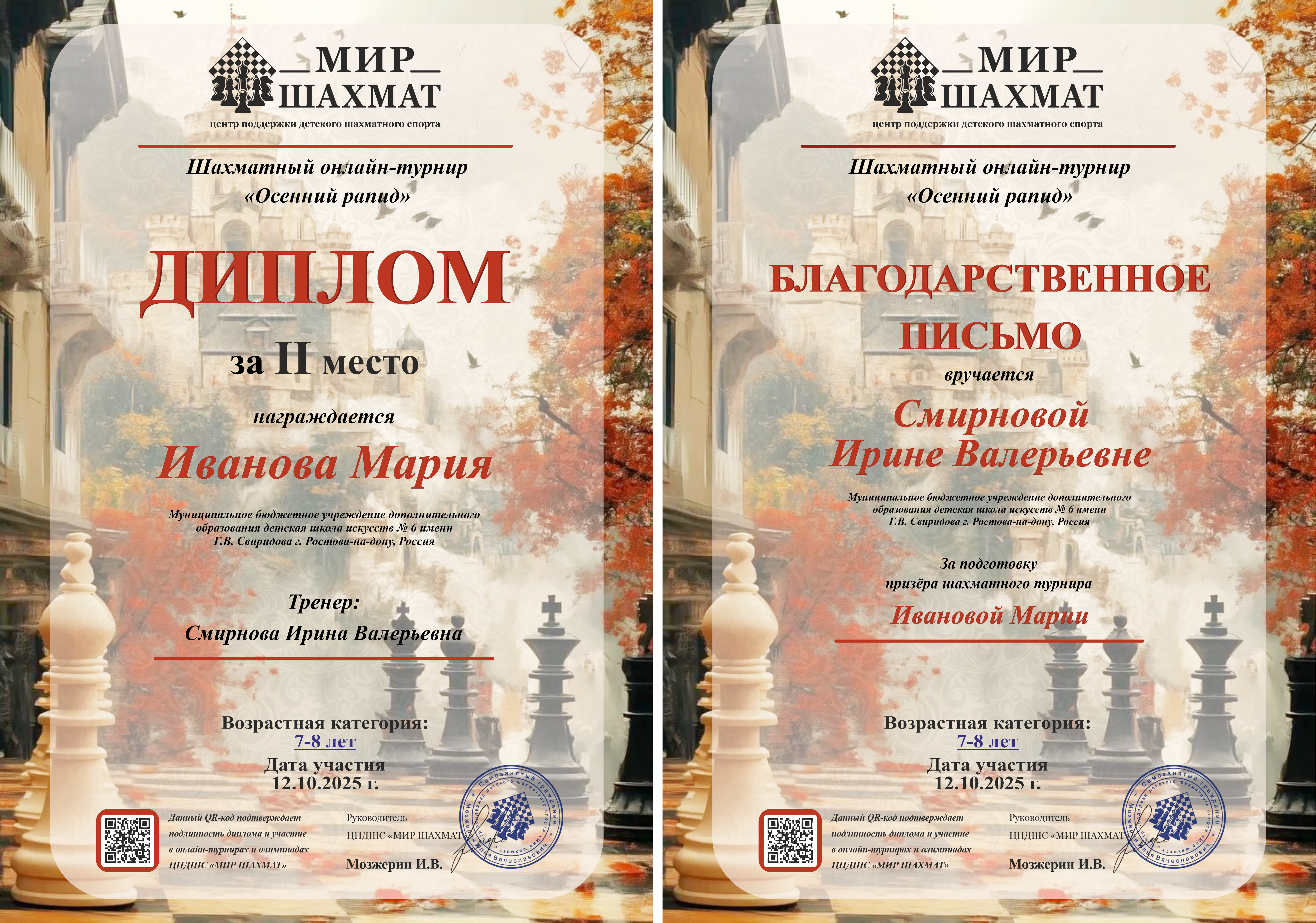 Шахматный турнир "Осенний рапид" - 12.10.2025 13:00 МСК (Приём заявок окончен!) (орг. взнос. 250 рублей)